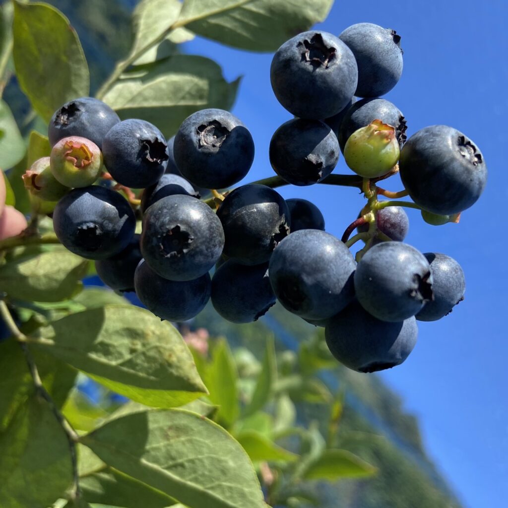 バークレイ(Berkeley)は、アメリカ原産のハイブッシュ系ブルーベリーで、大粒で甘みが強いのが特徴の品種です。酸味が控えめで食べやすく、果肉はやや柔らかめでジューシーな食感が楽しめます。フルーティーな香りも魅力のひとつです。収穫時期は7月中旬〜8月ごろで、寒さにも強く育てやすい品種です。そのまま食べるのはもちろん、ヨーグルトやシリアルにトッピングしたり、ジャムやお菓子作りにもおすすめです。甘くて食べやすいので、お子さまにも人気のブルーベリーです!