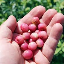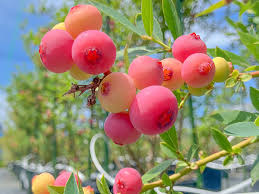 「ピンクレモネード」は、珍しいピンク色の果実を実らせるブルーベリーの品種です。通常のブルーベリーとは異なり、鮮やかなピンク色の実が特徴で、成熟するとより濃いピンクへと変化します。その見た目の美しさだけでなく、甘みが強く、ほのかに酸味を感じる爽やかな味わいが楽しめます。